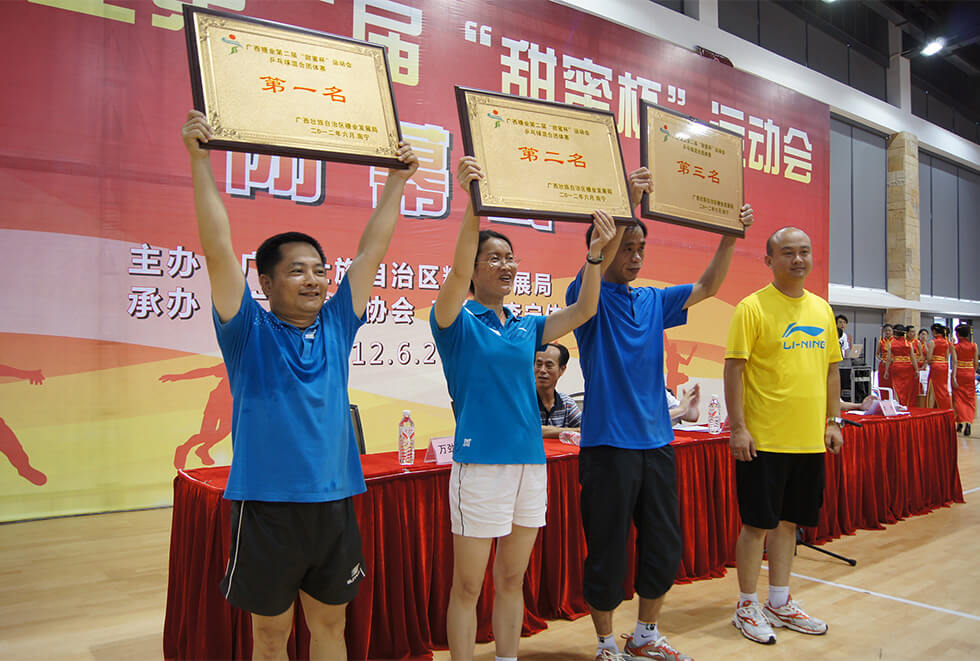 2012年,廣西糖業“甜蜜杯”運動會乒乓球混合團體賽第一名