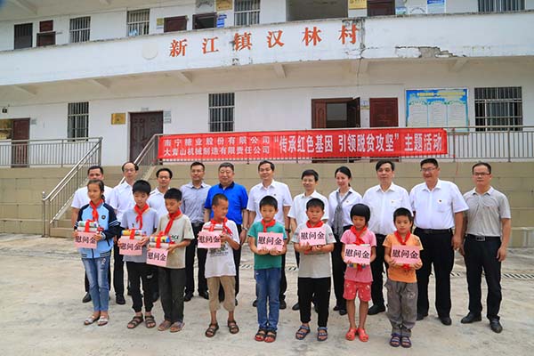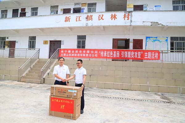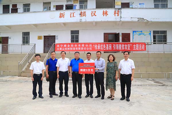 青山處處埋忠骨。1950年,內蒙籍解放軍戰士徐漢林在盤古村剿匪戰斗中,以“董存瑞式的爆破方式”與敵碉堡同歸于盡。戰斗結束后,盤古村改名為“漢林村”(邕寧區新江鎮),徐漢林的英魂也安葬于此,守望著這片風景秀麗但卻相對貧瘠的壯鄉熱土。5月27日,公司攜手內蒙古包頭市大青山機械制造有限責任公司(以下簡稱大青山公司),在漢林村舉行了“傳承紅色基因引領脫貧攻堅”主題活動,為漢林村捐款捐物,表達了對烈士英靈的敬仰、對脫貧攻堅工作的大力支持。